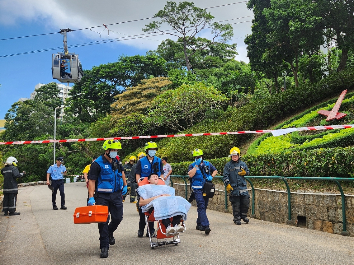 为加强松山缆车发生事故时的紧急应变协作能力,于9月25日,消防局联同市政署进行松山缆车事故拯救演习。