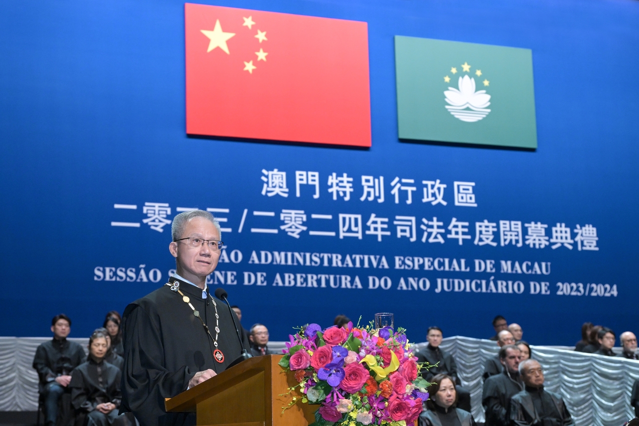 澳门特别行政区2023/2024年司法年度开幕典礼于10月20日下午3时30分假澳门文化中心综合剧院举行。典礼由行政长官贺一诚主持,立法会代主席崔世昌、终审法院院长岑浩辉、行政法务司司长张永春、检察长叶迅生、推荐法官的独立委员会主席刘焯华和澳门律师公会理事会主席黄显辉列席主礼台。