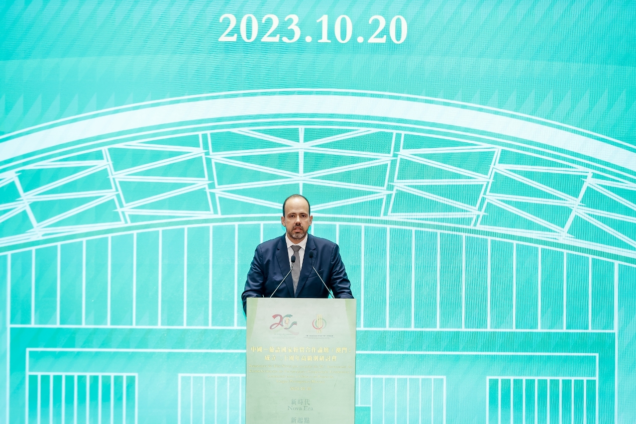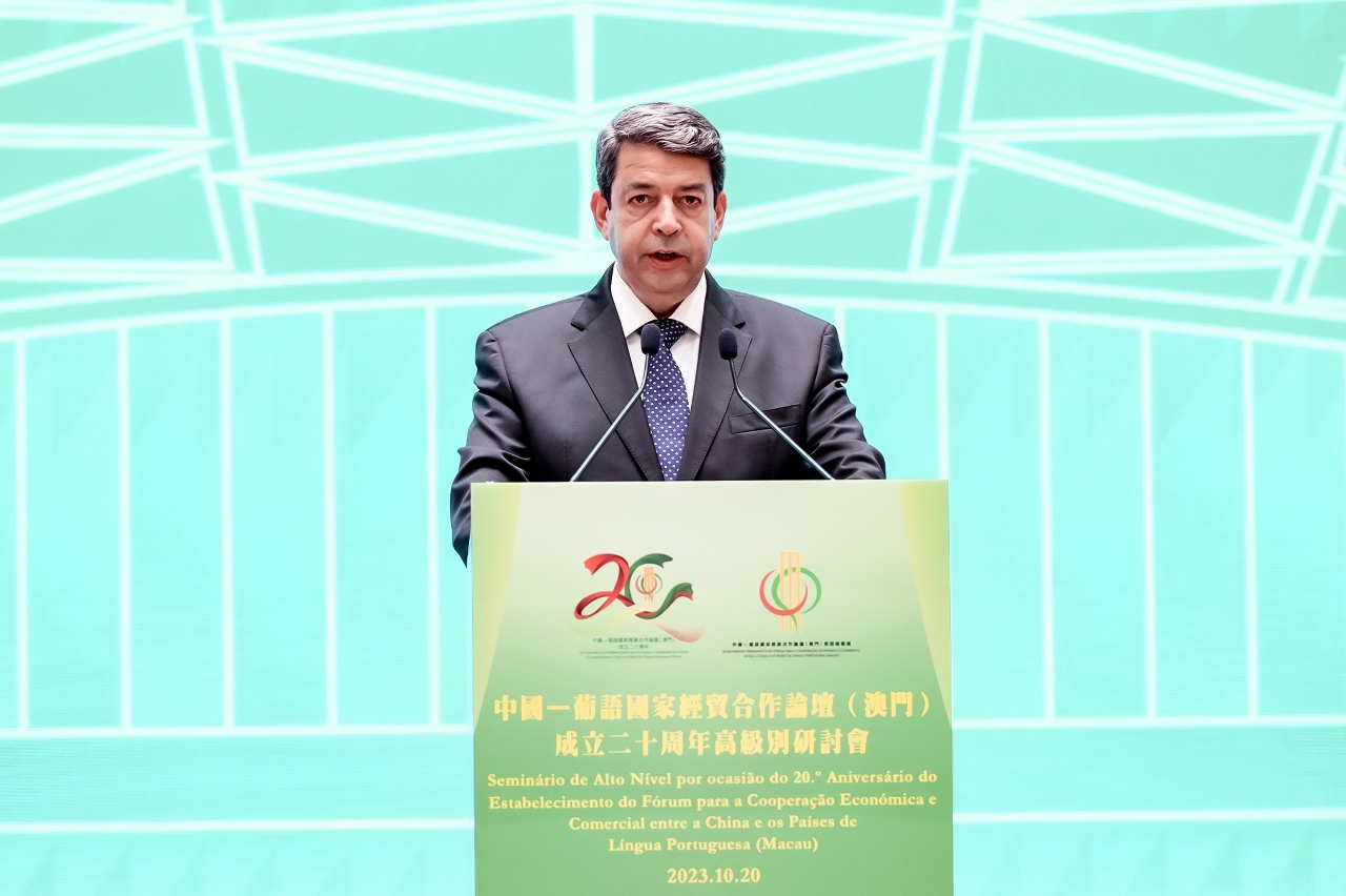 10月20日,中葡论坛(澳门)成立二十周年高级别研讨会暨中葡论坛(澳门)成立二十周年回顾展启动仪式在中国与葡语国家商贸合作服务平台综合体举行。