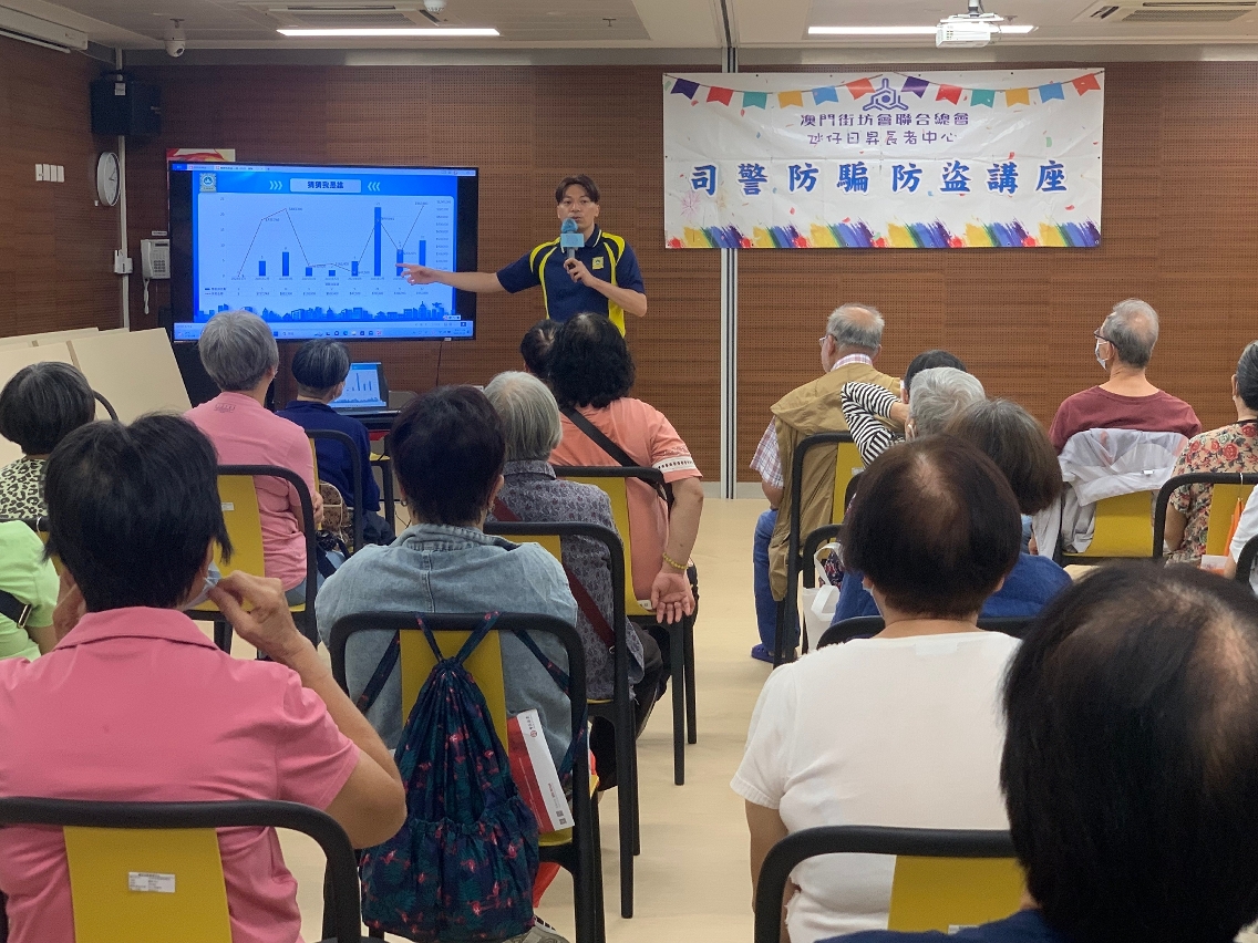 因应近期本澳电话诈骗案件持续多发,有不少长者堕入骗局,司法警察局与本澳多个社团、坊会及长者中心合作举办预防电话诈骗讲座,冀能提升长者的防骗意识,同时藉着加强与社会各界的联动合作,警民携手共建“全民防骗”社会。