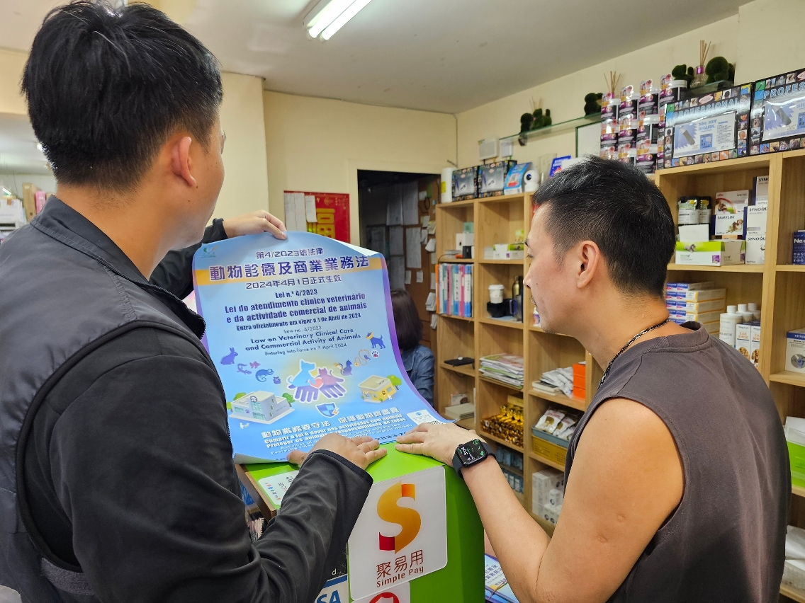 为了让本澳从事动物诊疗、商业业务场所负责人及动保团体对《动物诊疗及商业业务法》有更多瞭解,市政署除恒常巡查外,亦联同经济及科技发展局展开行动,走访相关业界讲解并派发宣传品等,让业界掌握法律对诊疗、繁殖、售卖、寄养四类动物场所的规范要求,以及《濒危野生动植物种国际贸易公约》附录物种之动物进口、繁殖和转移的现行法律规范,打击非法进口动物买卖。