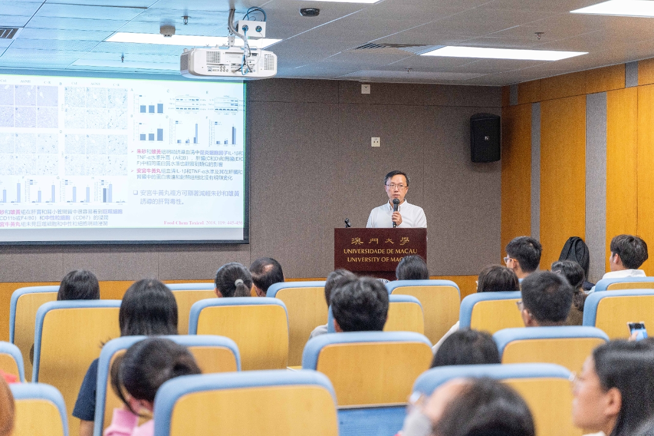 澳门大学今(24)日举行“澳大学人研究讲坛”第15讲,由澳大中华医药研究院教授李鹏以“用现代科技筑起中药安全的第一道防线”为题发表演说。讲座现场座无虚席,反响热烈,并吸引一众中学师生于线上参与。