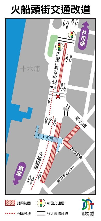 • 火船头街交通改道示意图