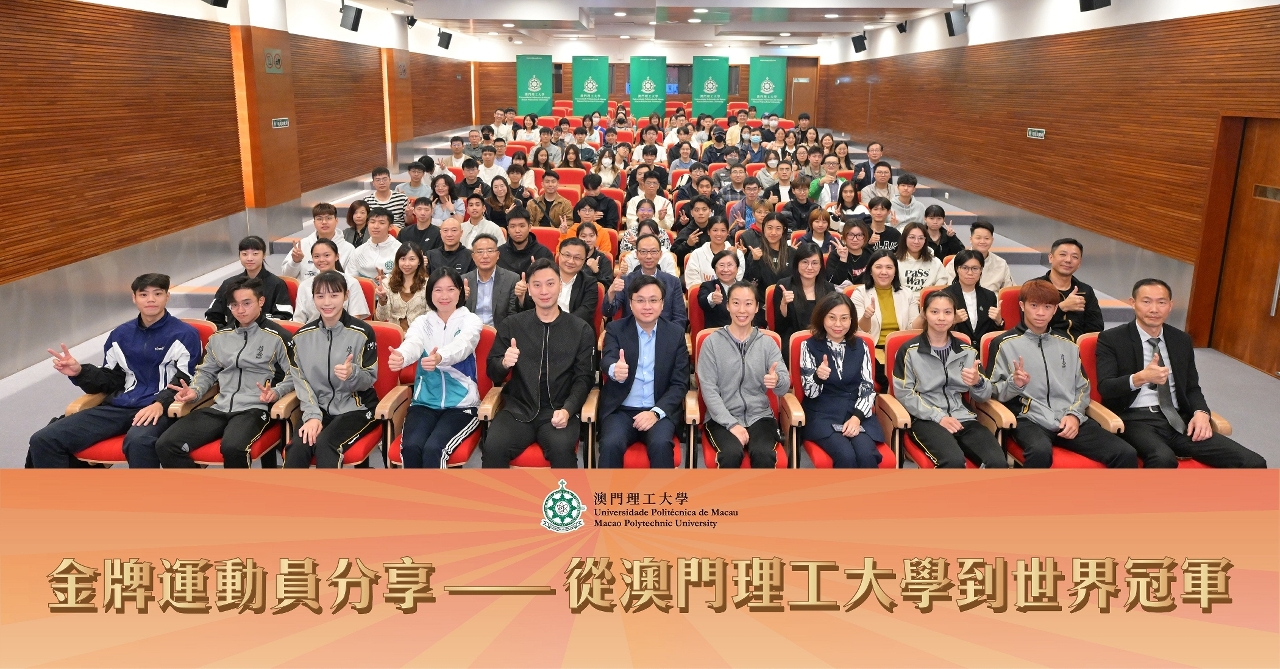 澳门理工大学于11月29日在汇智楼演讲厅举行 “金牌运动员分享──从澳门理工大学到世界冠军”分享会,汇聚众多亚洲运动会、世界大学生运动会、全国学生运动会、世界武术锦标赛等国际赛事金牌学生及毕业生,分享他们追梦之路。活动吸引近二百名澳理大师生参与,场面欢欣愉快,交流气氛热烈。