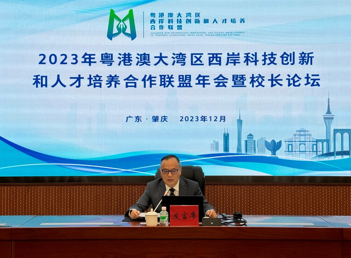 年会上,肇庆学院党委书记谢冠华、广东省教育厅一级巡视员朱超华、肇庆市委副书记池志雄先后致辞。澳门大学校长、联盟理事长宋永华在总结联盟2023工作成果及展望2024工作计划时表示,今年联盟成员优势互补、资源共享,落实了诸多优秀的成果,展望未来,期望联盟成员继续秉承“促科创、育人才,联西岸、建湾区”的理念,积极响应《粤港澳大湾区发展规划纲要》、《横琴粤澳深度合作区建设总体方案》等国家发展战略,积极开展高层次人才联合培养,精确对接优势学科学术科研合作,为大湾区西岸创新科技走廊和拔尖人才培养基地建设作出贡献。