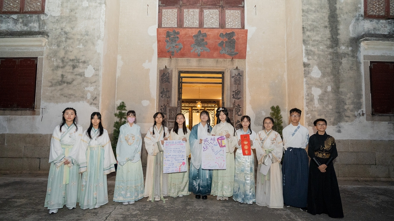 活动中,学员身穿汉服学习书法、泼墨的技巧,体验围棋对弈、手搓线香、皮影戏创作等,并欣赏古筝琴音,体验传统音乐之美。是次活动于“世界遗产青少年教育基地”郑家大屋举行,除了能让学员在世界遗产中式建筑内沉浸式学习外,更能充分发挥基地的教育功能,以轻松的形式寓教于乐,让学员将传统文化与社区及日常生活连结,并向身边的家人朋友传播及推广。