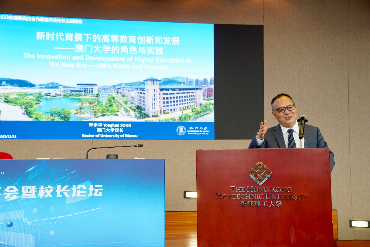 2023苏港澳高校合作联盟年会暨校长论坛今(11)日于香港举行。澳门大学校长宋永华与来自苏港澳三地高校和支持单位逾百名代表围绕“人工智能与大数据时代高等教育的机遇与挑战”及“大学科研与产业科技创新”展开热烈讨论,为联盟建设、推动长三角和粤港澳大湾区的高等教育发展建言献策。