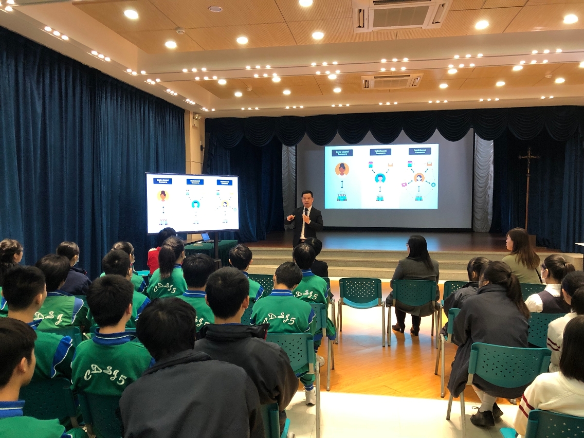 DFS全渠道总监杨涛 以「1+4产业发展策略下高端零售市场发展动向」为题,向高中生介绍近年本澳高端零售业在本地生产总值占比的变化,数据显示行业发展未受疫情影响,凭藉澳门独特关税优势和酒店设施,旅游活动复常后,市场更具活力前景更加开阔,并指出利用多渠道的社交媒体全方位打造新型销售平台,依托大数据分析客户消费模式和习惯,人工智能的应用更好地服务客户选购产品,使消费者有更佳的购物体验。