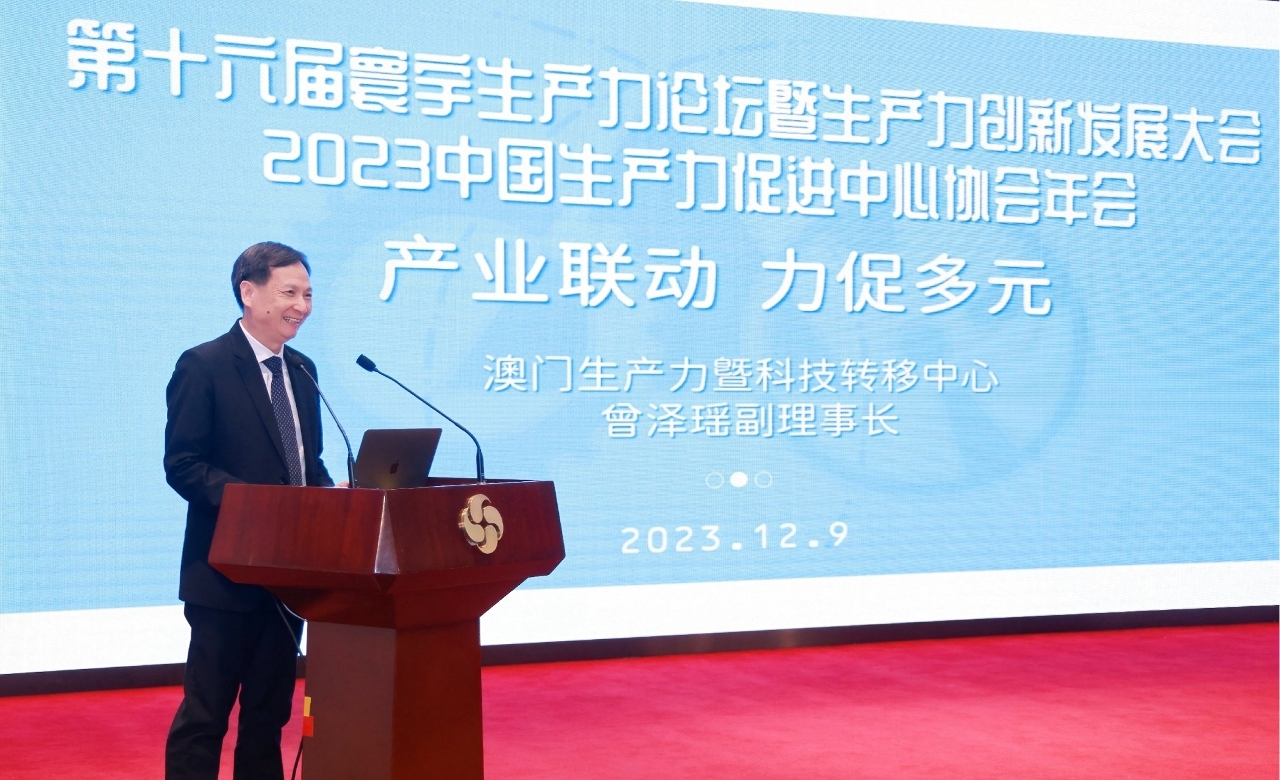 第十六届寰宇生产力论坛于2023年12月9日在北京隆重举行。本届论坛以“生产力高质量发展与中国式现代化”为主题,科技部有关司局及相关部门的领导,海峡两岸暨香港、澳门地区代表,全国各生产力促进中心和会员单位代表,获奖机构、行业机构、高等院校、科研院所、科技园区、孵化器以及企业代表等近600人现场出席,各界人士共计10.4万人次线上参加会议。论坛与生产力创新发展大会同时举行,由中国生产力促进中心协会、台湾财团法人中国生产力中心、香港生产力促进局、澳门生产力暨科技转移中心共同主办。