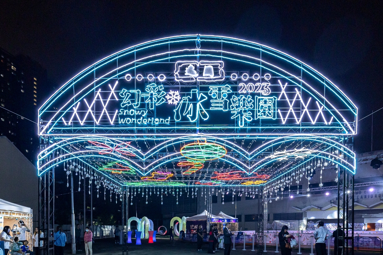 在北区举办的“幻彩冰雪乐园”于2023年12月9日至2024年1月14日期间逢周六日,在逸园赛狗场设置仿真溜冰场、灯光装置、游乐场、亲子工作坊及互动游戏。活动期间,居民和旅客在北区商户消费满指定金额,凭单据可换取仿真溜冰场或亲子工作坊的参加机会,活动又联动北区特色商户推出美食券,促进社区经济。