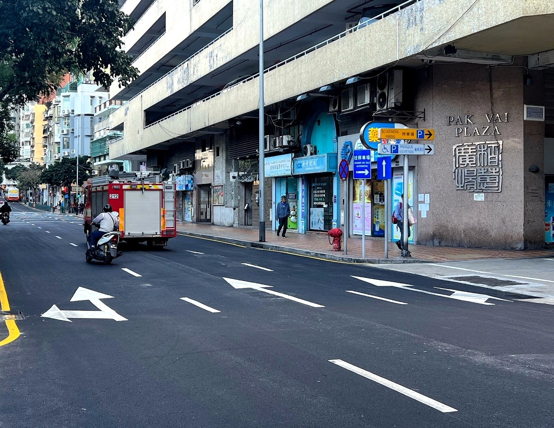 市政署早前以即刨即铺,夜间施工日间通车模式,分阶段对美副将大马路重铺新型沥青,工程如期竣工,今(29日)已恢复正常通车。