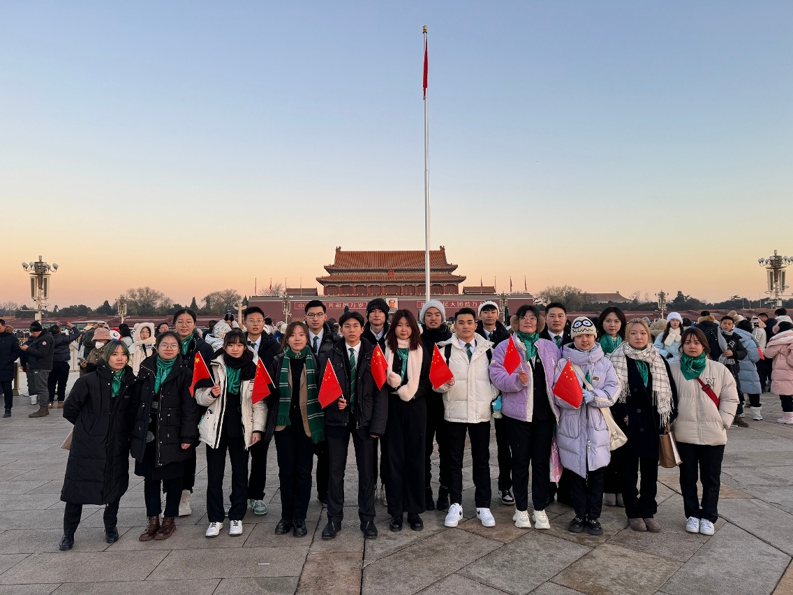 在专题讲座的基础上,现场教学活动生动有趣,充满精彩亮点。交流团一行参观中国共产党党史纪念馆,瞭解党的发展历程与伟大成就;到北京首钢园冬奥会场馆瞭解体育赛事与国家安全的密切联系,同时还出席观看庄严的天安门广场升旗仪式。学生表示,于隆冬日出时分,当国旗在鲜艳的晨曦中伴随雄壮的国歌声冉冉升起时,彰显着国家的统一、威严和荣耀,红旗下暖意洋溢,亲身感受到国家的伟大和庄严,并倍加珍惜和尊重家国、加深对国家的敬爱。