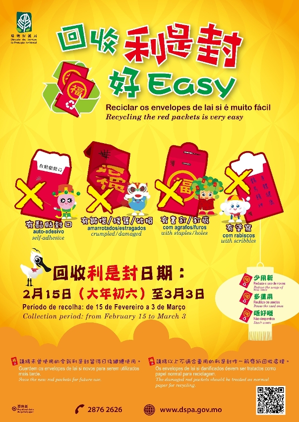• 环境保护局续推“回收利是封好EASY”活动,鼓励市民将利是封重用回收。