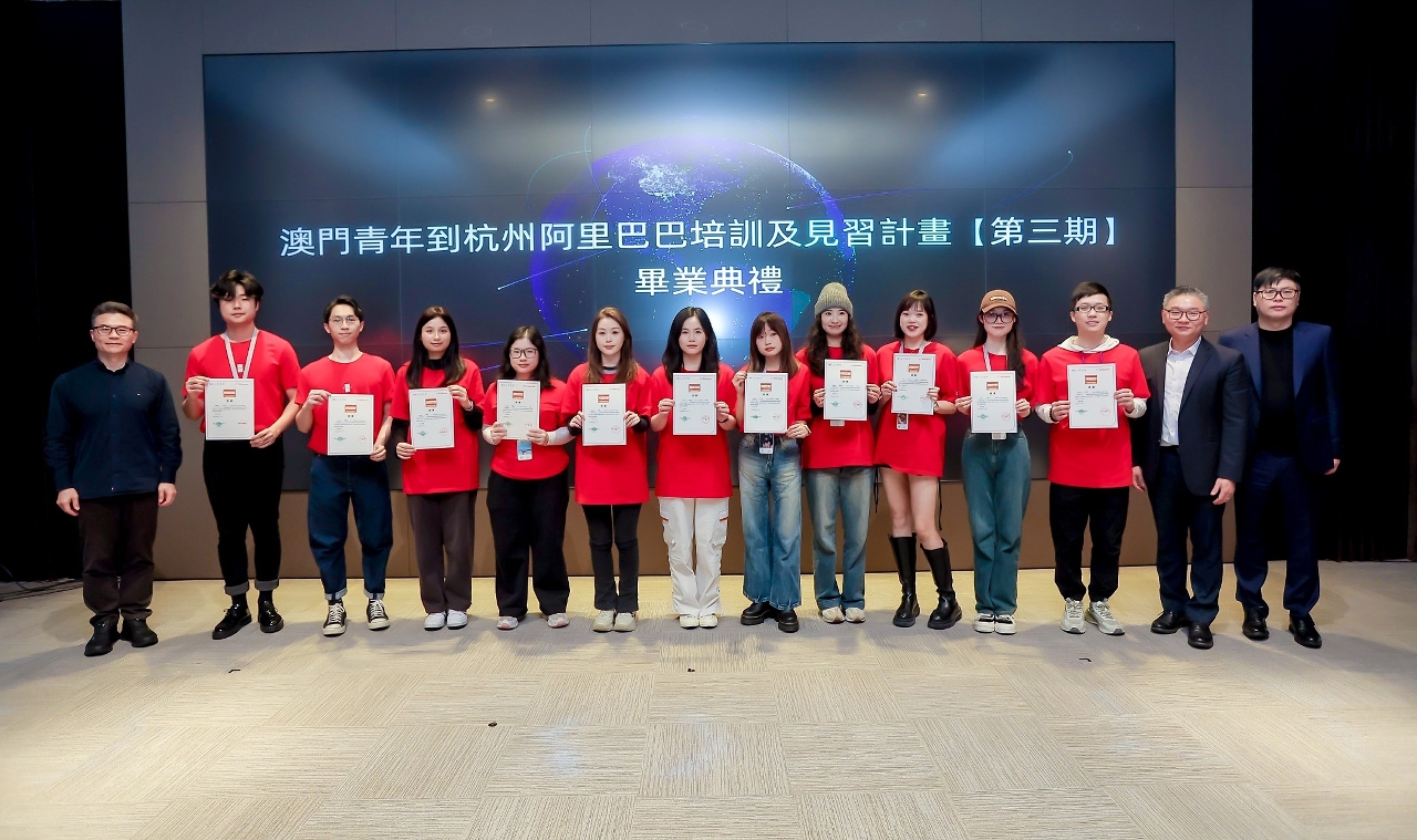劳工事务局与阿里巴巴集团合办第三期“澳门青年到杭州阿里巴巴培训及见习计划”,参加第三期见习的37名澳门青年已完成为期八周的见习培训,毕业礼于2月1日在杭州阿里巴巴总部举行。