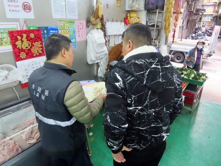 随着法规生效至今,市政署共发出370份零售鲜活食品场所的登记证明,其中顺利由旧牌照转入成登记证的有365份,新开业登记有5份。市政署持续加强对零售鲜活食品场所进行卫生巡查,检视场所卫生情况及设施设备,并提出意见协助场所作出改善,使能符合法规要求。法规生效至今,对零售鲜活食品场所巡查及走访超过110间次,除检查场所整体卫生状况外,亦针对场所营运条件及排污系统等作重点检视,巡查期间主要发现部分蔬菜场所把货品摆放在场所以外范围展示,渔获场所在搬运或运输过程中未有妥善处理污水等问题,巡查人员已向相关场所作出劝喻及要求整改,并对场所进行复查复检,经劝喻后有关场所均有改善。