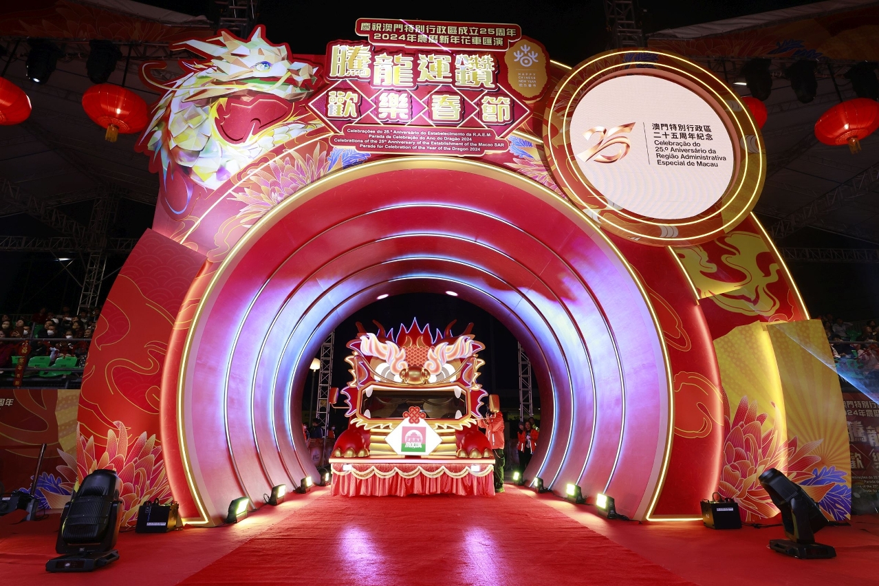 “庆祝澳门特别行政区成立25周年 2024年农历新年花车汇演 腾龙运钻欢乐春节”将于农历年初八(本周六)晚上8时在圣若瑟大学及圣若瑟教区中学第六校起步,并于终点佑汉街市公园设舞台表演,吸引居民和旅客走进社区,感受热闹的节庆氛围。