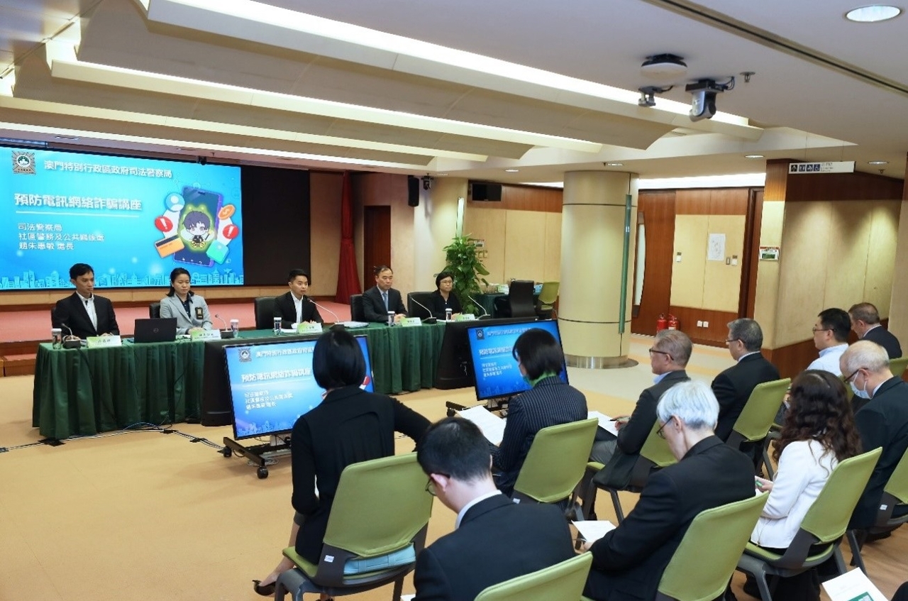 为让学生和教职员提高防备和警惕意识,应对常见和日新月异的诈骗手法,且近期大学生受骗比例仍然值得关注,教育及青年发展局联合司法警察局于2月22日进行讲解会,交流最新的防诈骗资讯,以助各方为日后的宣教工作做好部署,提升效能。出席人员包括教青局副局长丁少雄、高等教育厅厅长许嘉路、学生厅厅长陈旭伟,司警局社区警务及公共关系处处长赵朱惠敏,及高等院校领导及主管人员。