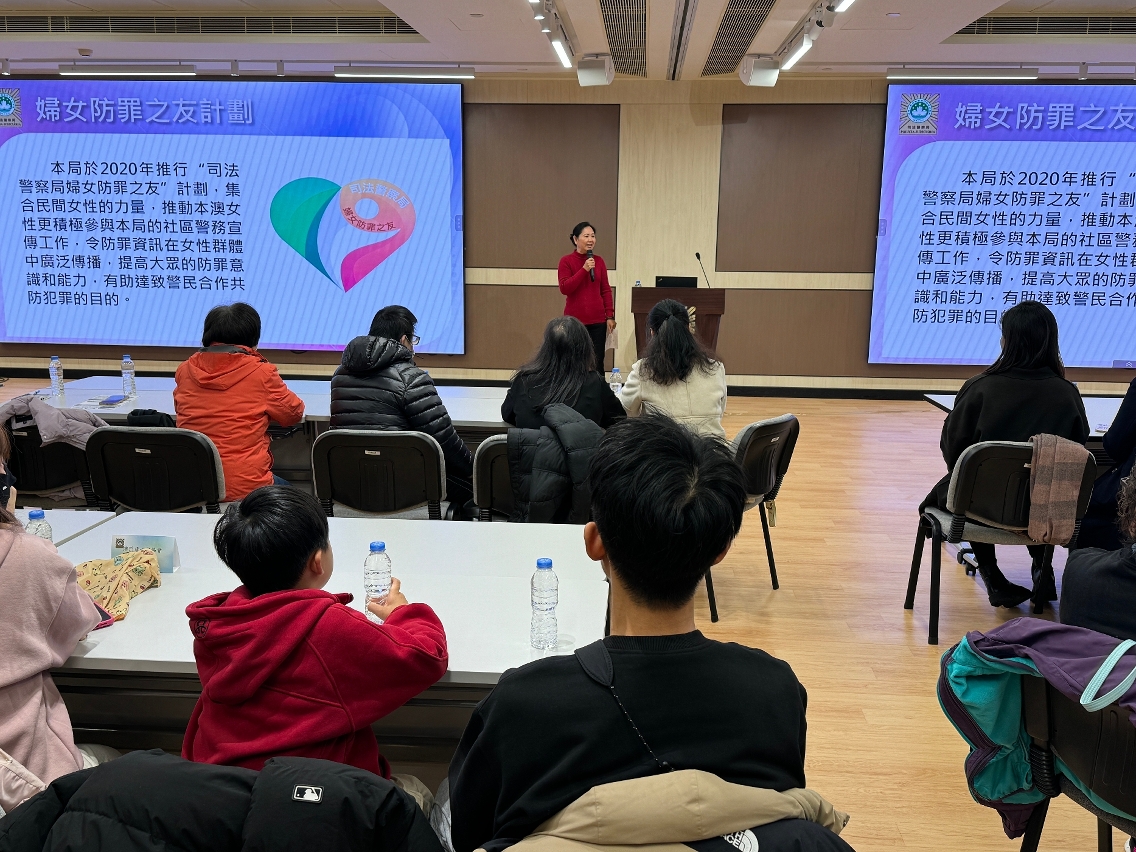 为庆祝国际妇女节,司法警察局妇女防罪之友与澳门唐心儿协会合作举办参观交流活动,组织亲子团参观司法警察学校,藉此增强警民合作和提升防罪灭罪意识,以及向社会各界传递关爱妇女和弱势群体、共建和谐社会的正面讯息。