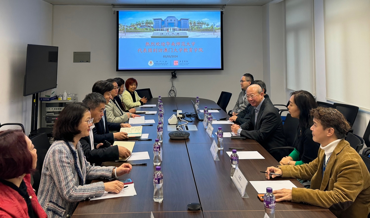 华南师范大学校长杨中民率代表团访问澳门大学,获澳大校长宋永华热情接待。双方进行了深入的座谈交流,期望共同推动粤港澳大湾区高等教育发展,推进两校教师教育合作。