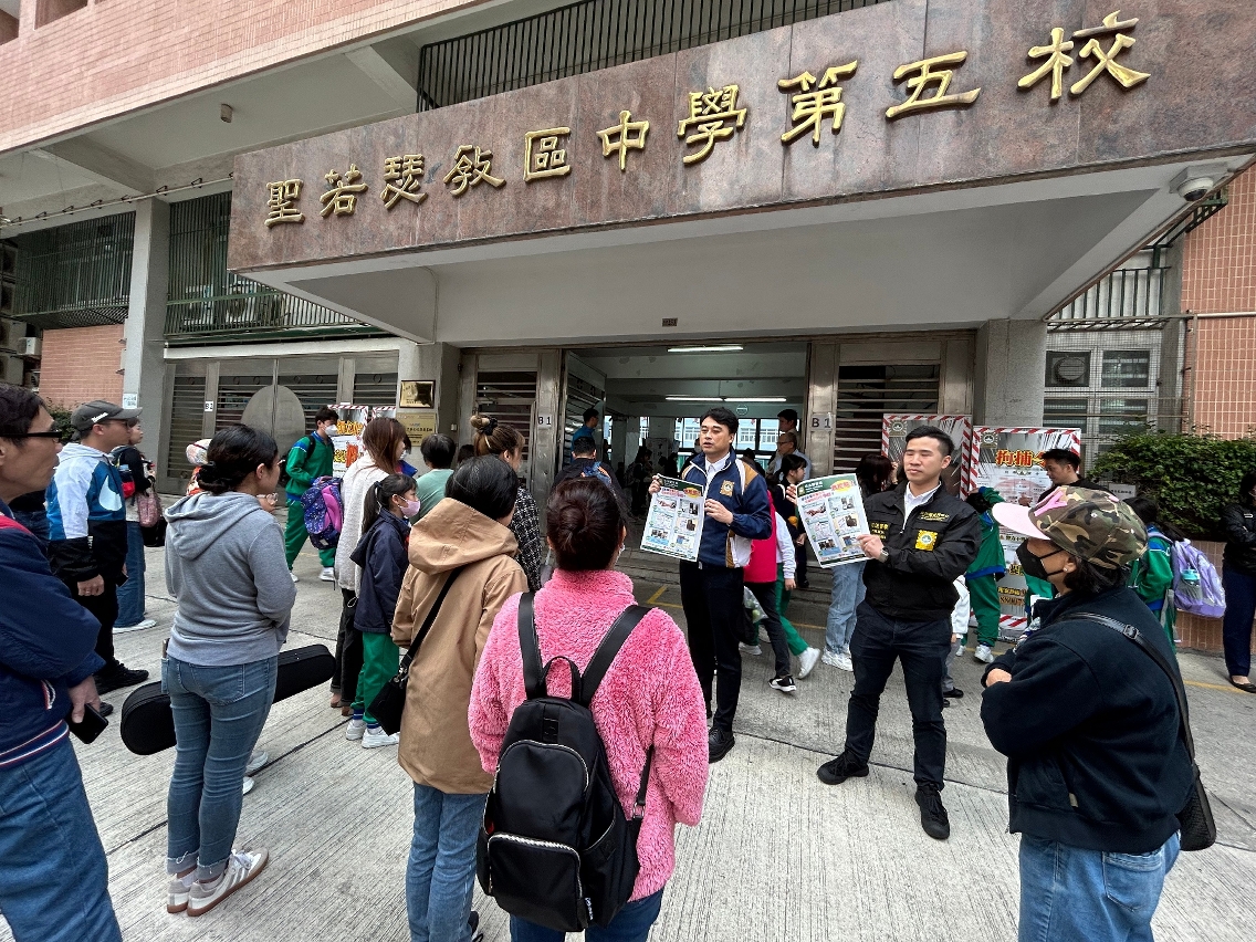 此外,司警局人员在放学时段,到校园周边主动与家长互动交流,宣导防骗资讯,并鼓励家长积极将最新防骗资讯传递长辈、教育子女,共同减少上当受骗的机会。