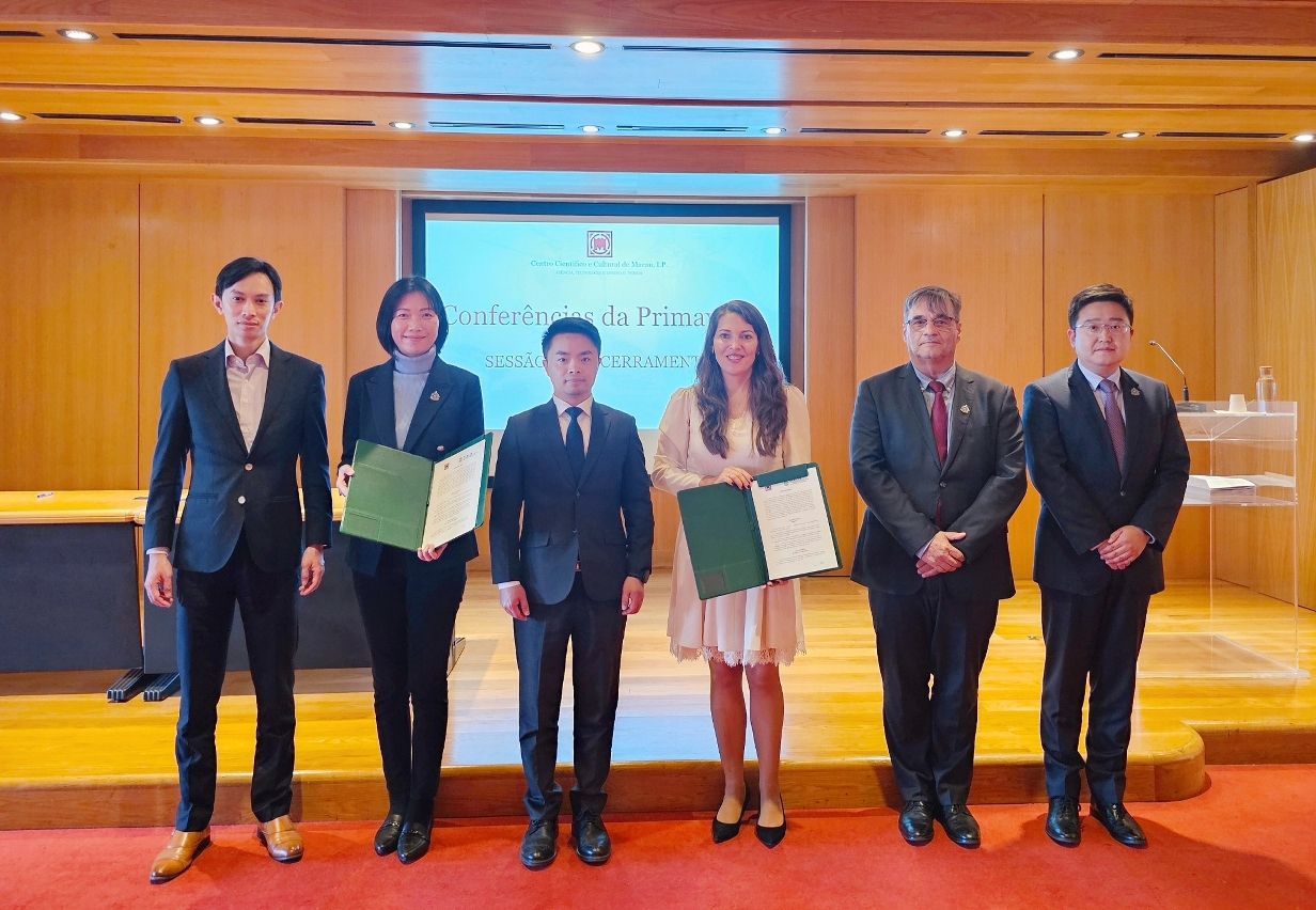 在中国与葡萄牙建交45周年之际,为拓展澳门中葡平台作用,澳门理工大学代表团于当地时间3月20日下午出席葡萄牙澳门科学文化中心(CCCM)举办的“2024春季研讨会”闭幕式,受到中心主席卡门•门德斯(Carmen Mendes)的热情欢迎。在闭幕式上,澳理大副校长李雁莲和门德斯分别致词,并代表双方机构签署合作协议书。澳门特区政府教育及青年发展局副局长丁少雄等现场见证签约仪式。
