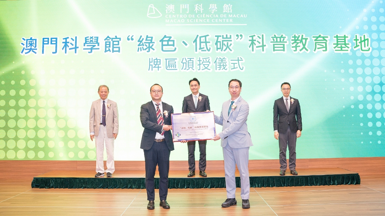 有关基地牌匾颁授仪式于3月26日在澳门科学馆展览中心举行,在教育及青年发展局局长、澳门科学馆股份有限公司股东会主席龚志明、中国城市科学研究会绿色建筑与节能专业委员会主任王有为,以及中国绿色建筑与节能(澳门)协会会长卓重贤的见证下,中国城市科学研究会绿色建筑与节能专业委员会副秘书长戈亮向澳门科学馆馆长邵汉彬颁授“绿色、低碳”科普教育基地牌匾。科学馆董事会、澳门科技大学、中国绿色建筑与节能(澳门)协会、中国建筑工程(澳门)有限公司、澳门建筑业协会等代表出席仪式。