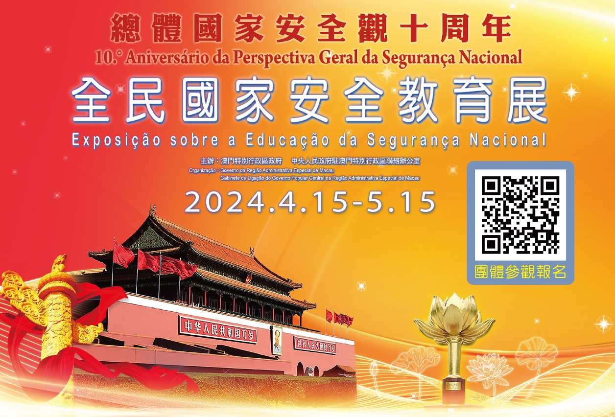 为了让本澳居民全面、深入瞭解总体国家安全观提出十年以来,国家安全体系和能力建设取得的突破性进展,从而坚定不移贯彻落实总体国家安全观,全力维护国家安全和澳门社会繁荣稳定,澳门特别行政区政府与中央人民政府驻澳门特别行政区联络办公室今年继续合办“全民国家安全教育展”,并定于4月15日“全民国家安全教育日”上午举行揭幕仪式,同日下午3时全面开放予公众参观。