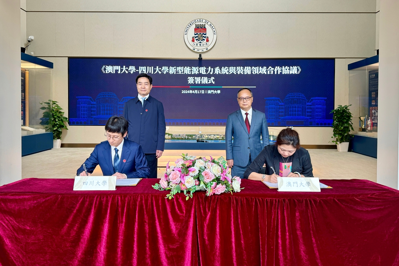 在宋永华与甘霖的见证下,澳门大学科技学院代院长周万欢与四川大学电气工程学院党委书记赵昱辉共同签署合作协议。双方将本着互惠共赢、相互促进、共同发展的原则,贯彻落实“教育-科技-人才”战略,携手推动粤港澳大湾区和西部能源电力领域的高质量发展。
