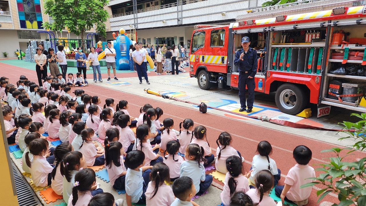 消防局十分重视青少年的消防安全培育工作,持续到访校园进行消防安全宣教活动。于4月16日上午,消防局走进嘉诺撒圣心中学(幼稚园)举办“消防工作推广活动”,藉此强化学童的消防安全意识,以及启发其服务社会的精神。
