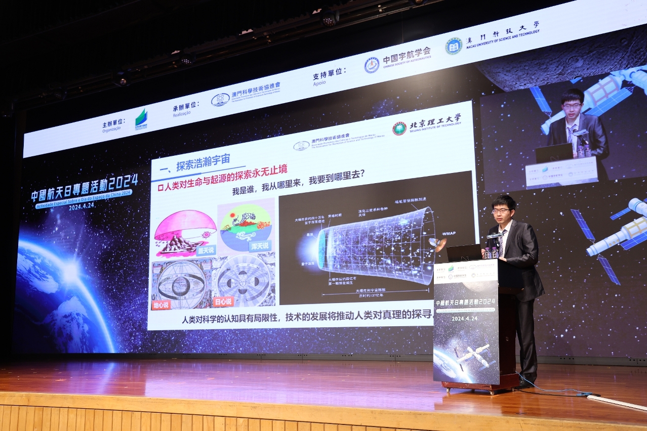 为庆祝每年4月24日的“中国航天日”,让澳门青年学生更好地瞭解国家航天事业和科普工作的开展情况,增加他们对国家的使命感,由教育及青年发展局主办,澳门科学技术协进会承办,并由中国宇航学会及澳门科技大学支持的 中国航天日专题活动2024” 开幕仪式暨专题讲座于424日下午在澳门教业中学(冼星海大马路校部)礼堂顺利举行。开幕仪式由教育及青年发展局副局长阮佩贤、中央人民政府驻澳门特别行政区联络办公室教育与青年工作部处长岑嘉仪、澳门科学技术协进会理事长邵汉彬、澳门中华教育会会长陈虹、澳门天主教学校联会副理事长陈信望、澳门科技大学太空科学研究所所长宗秋刚及北京理工大学宇航学院副教授李翔宇主持。