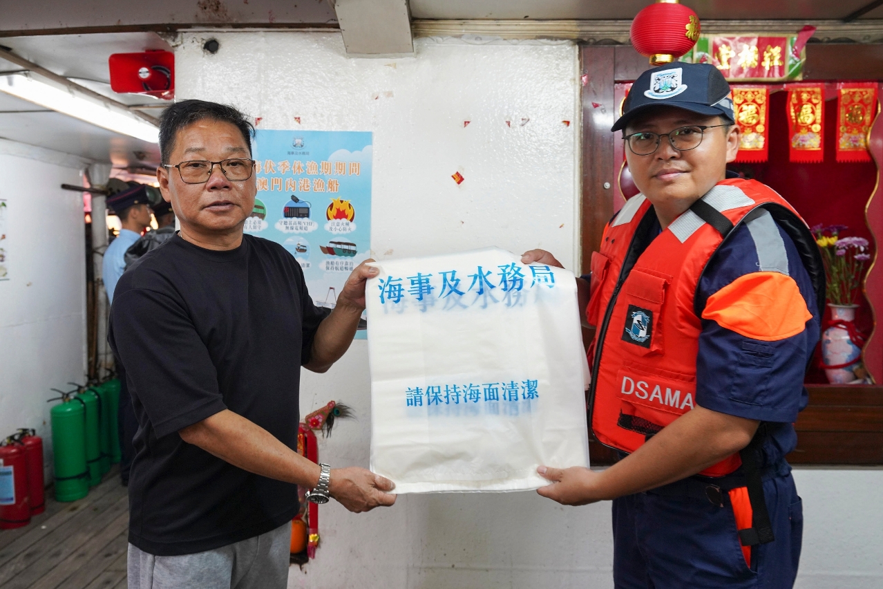 海事局今年继续与渔民互助会合作收集渔船的生活垃圾,与业界合力共建清洁卫生的海上环境。渔民互助会在收集生活垃圾期间,亦会巡视锚泊在内港的渔船;如发现异常,会即时通报海事局或海关,以及时处理突发事件。