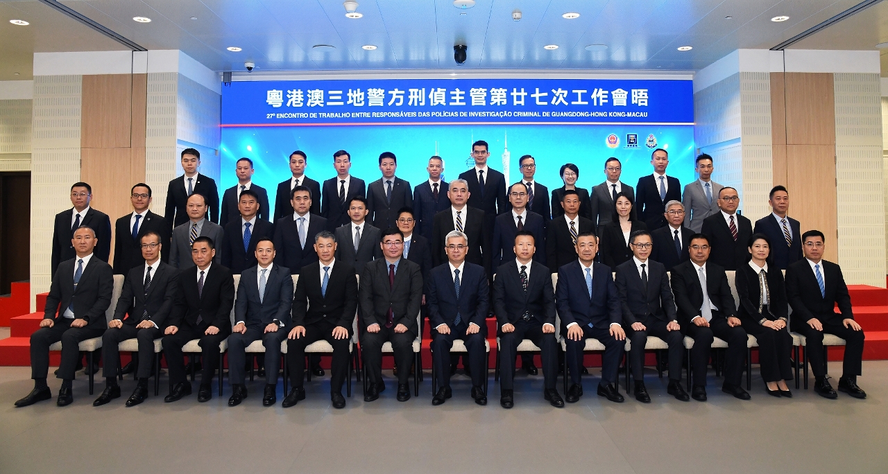 “粤港澳三地警方刑侦主管第二十七次工作会晤”于5月21日在澳门举行。澳门保安司司长黄少泽、公安部刑事侦查局副局长陈士渠、中央人民政府驻澳门联络办公室警务联络部副部长王前进和中央人民政府驻香港联络办公室警务联络部处长刘勇特邀出席会议。澳门警察总局局长梁文昌率领澳门警方代表团,与广东省公安厅副厅长林伟雄及香港警务处副处长周一鸣分别率领的粤港警方代表团进行工作会晤。