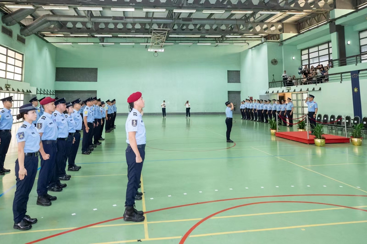 今(23)日下午,治安警察局在特警队大楼举行首席警员晋升仪式,仪式由吴锦华局长主持,出席仪式的有梁庆康副局长以及各部门主管,有关领导主管为获晋升的首席警员戴上新肩章。