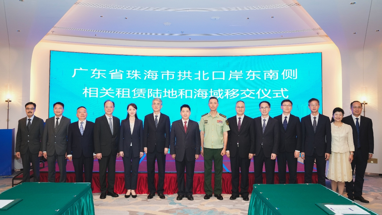 5月31日上午,珠海市举行拱北口岸东南侧相关租赁陆地和海域移交仪式,澳门特区政府行政法务司司长张永春、珠海市市长黄志豪、中央政府驻澳门联络办公室经济部副部长杨皓等出席仪式。