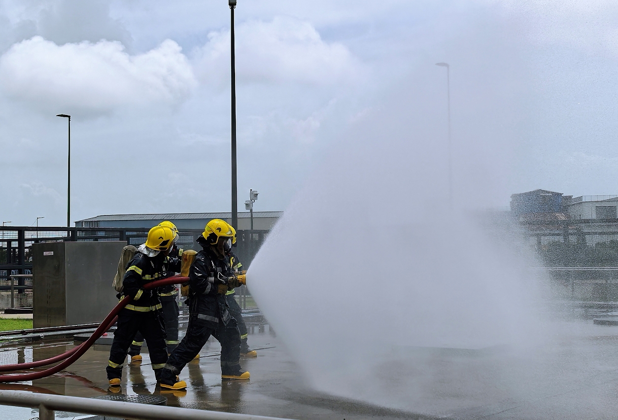是次演习消防局、海事及水务局及南光石油化工有限公司合共派出约40名人员参与,演习历时约半小时,主要目的是测试紧急状况下多方的应变能力及沟通机制,过程顺利并达到预期成效。