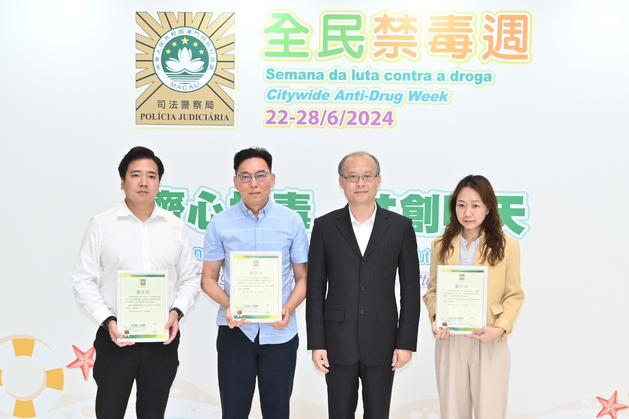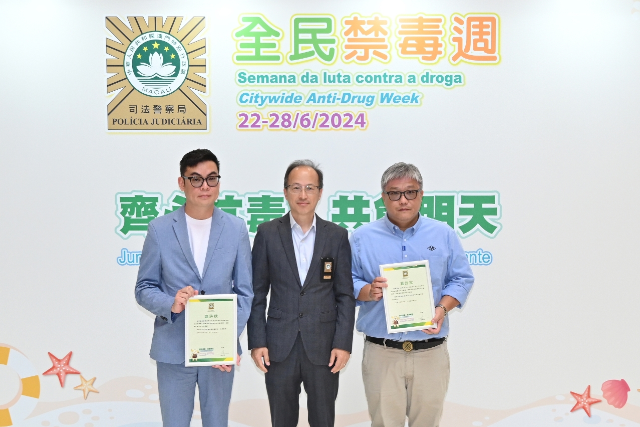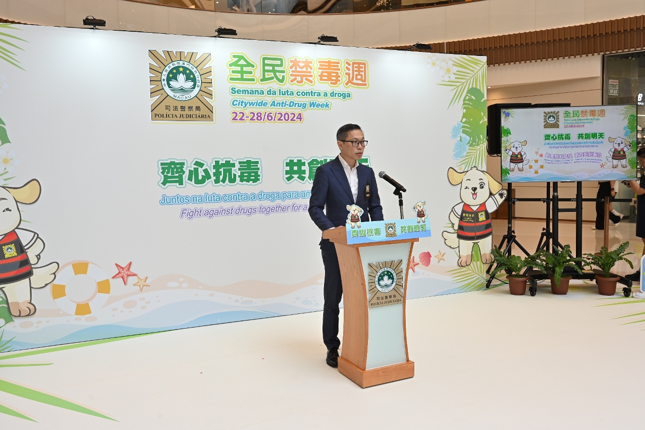 薛仲明局长致辞时表示,尽管近年本澳毒品犯罪保持低案发率,禁毒工作仍不能松懈,司警局坚持“重情报、强打击、宣禁毒、促技术"四大导向应对越趋多样化和复杂化的毒品犯罪形势,竭力维护社会秩序和市民安全。他指出,当前禁毒工作面临毒品大麻泛滥外溢风险加大、新型毒品不断向社会渗透、贩毒吸毒复杂化及隐蔽化的形势,全社会须共同合作,做好青少年禁毒宣传,以遏制毒品低龄化传播。司警局始终重视预防作为治理毒品犯罪的根本原则,持续优化禁毒宣教工作,推动大众关注毒品祸害,防微杜渐。此外,他鼓励市民持续留意和分享警方禁毒资讯,警民合力守好禁毒战线,携手实现“无毒社会"。