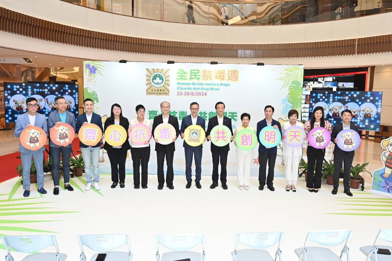 “全民禁毒周"活动于6月22日至28日期间在氹仔星皓广场举行。启动仪式于活动首日上午进行,邀得广东省禁毒办副主任及广东省公安厅禁毒局政委郑志强、“司法警察局大厦防罪之友"总召集人及澳门物业管理业商会永远会长刘艺良、澳门街坊会联合总会会长吴小丽、澳门妇女联合总会会长刘金玲、澳门工会联合总会副理事长李静仪、民众建澳联盟理事长李良汪、澳门归侨总会副会长赵文炎、澳门不动产管理专业技术人员协会会长仇坤仪、澳门物业管理专业人员协会副会长戴伟雄、中华教育会副理事长杨佩欣及星皓广场总经理李恩广等嘉宾,联同司警局局长薛仲明主礼。司警局副局长赖文威、苏兆强及岑锦荣,以及多名主管人员出席。