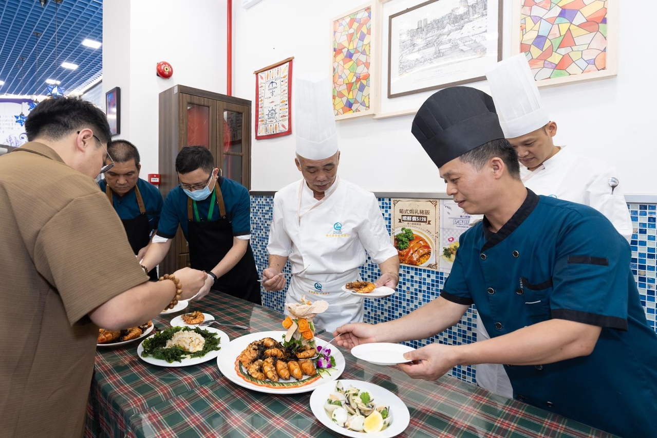 潮州的厨师与金沙中国有限公司的邱吉尔餐厅高级主厨到澳门扶康会辖下的“葡角”训练餐厅举办分享会和工作坊,分享烹饪技巧及知识;