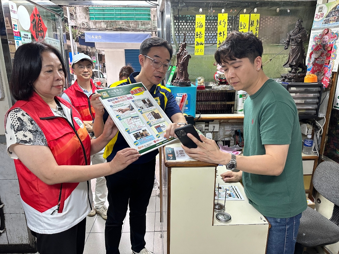 因应近期电讯诈骗案频发,为提高居民的防骗警惕,司警局人员向居民宣讲最新的防骗资讯,重点讲解近期再现的“猜猜我是谁”骗案手法,呼吁他们如接到陌生来电应保持警觉,切勿轻信陌生人自称的身份而答应对方要求,时刻紧记“拒绝”、“挂线”、“报案”防骗三原则。此外,还向居民推广司警局推出的“反诈程式”,介绍程式的各项功能,呼吁居民多利用当中的“诈骗搜寻器”功能协助分析可疑电话号码、电邮、银行帐户号码的诈骗风险指数,亦可从程式中瞭解电讯网络骗案最新手法和预防方法。