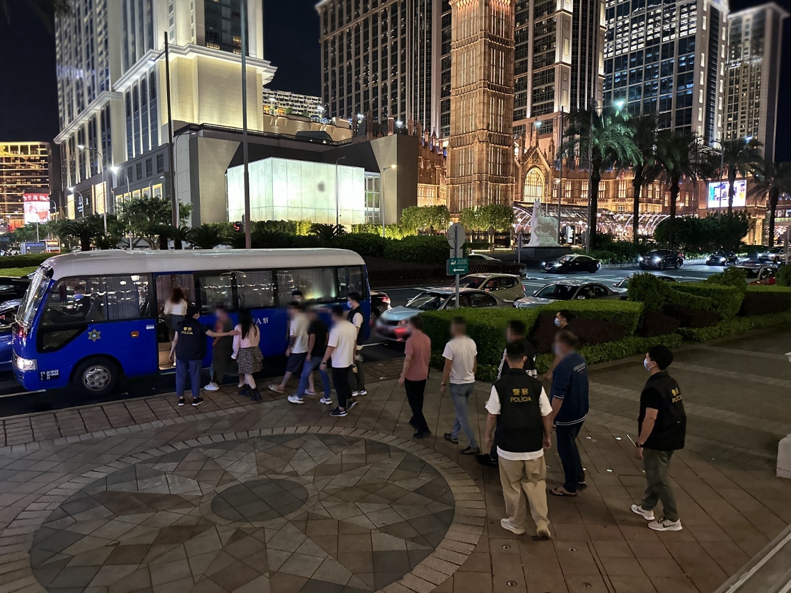 在警察总局统筹下,治安警察局于昨(5)日持续开展“雷霆2024”行动,以维护本澳良好治安环境。治安警察局澳门警务厅、海岛警务厅、交通厅及情报厅共派出52名人员,分别巡查澳门各区多间酒吧及按摩场所,同时在路氹城金光大道一带加强截查可疑人士,并进行不定点查车行动,以预防及打击各种不法行为和犯罪活动。