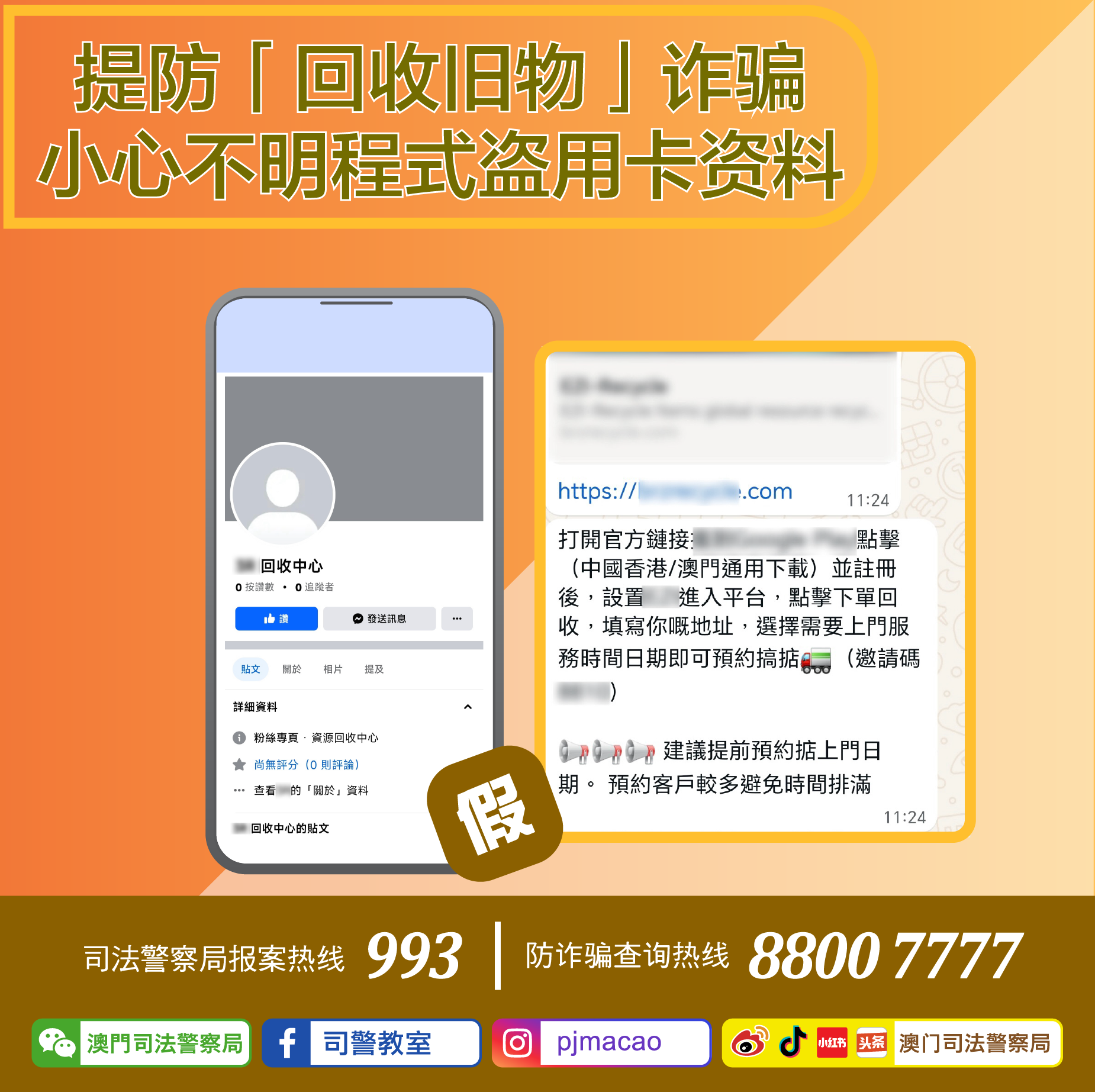 • 司警局呼吁市民提防「回收旧物」诈骗陷阱