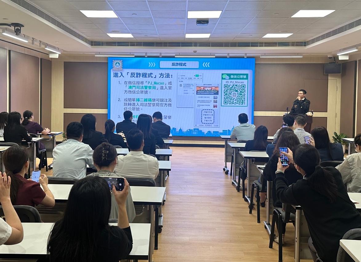 司警局分别于6月24日、6月26日及7月5日在司警局总部,以及中国建设银行澳门分行、招商永隆银行澳门分行举办防骗工作坊,由司警局反诈骗协调中心人员担任主讲,共113名本澳银行工作人员出席。