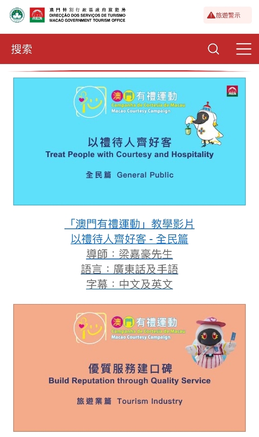 • “澳门有礼运动”线上教学影片介绍行业待客之道和优质服务技巧