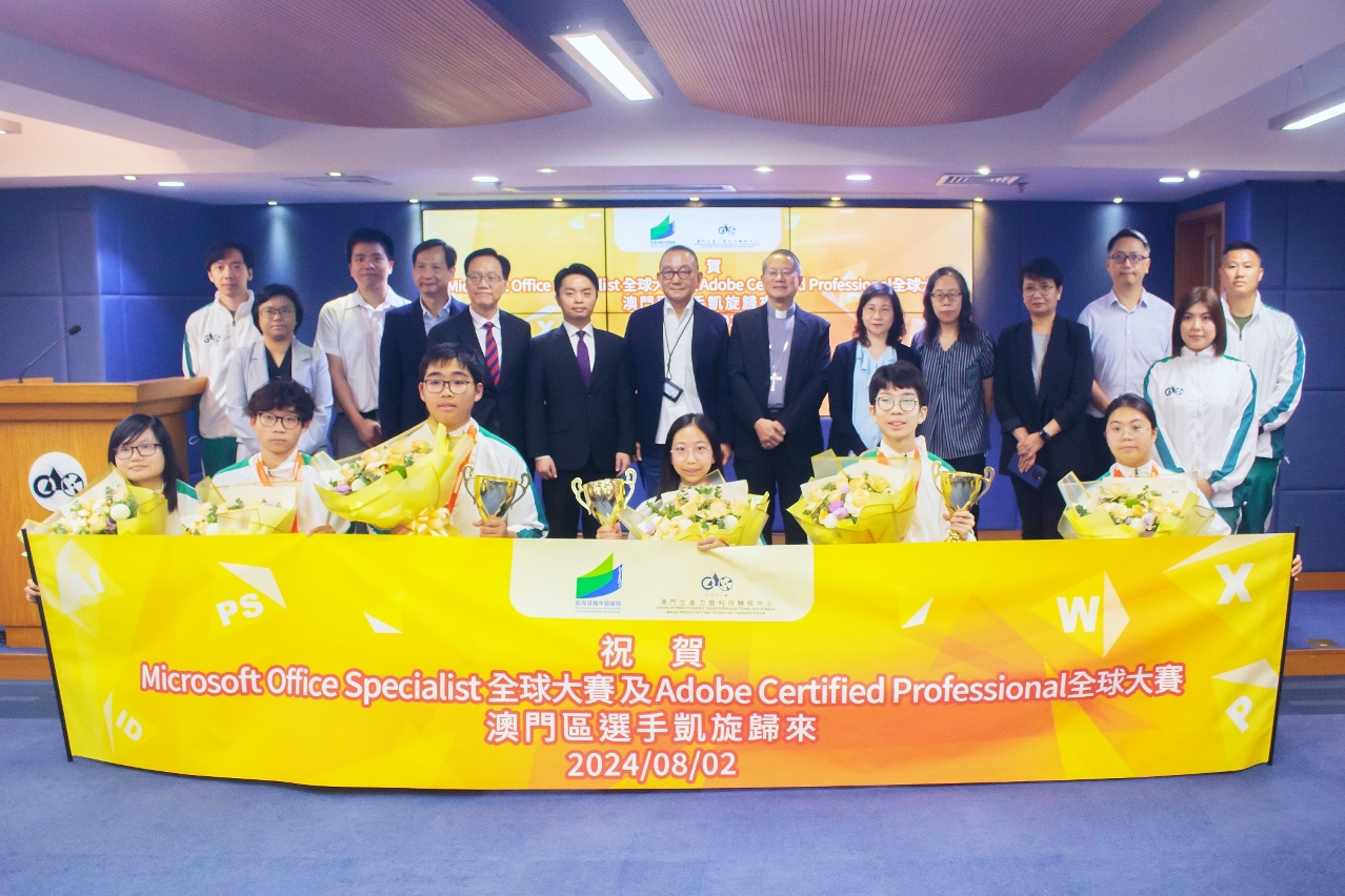 由澳门教育及青年发展局、澳门生产力暨科技转移中心共同合作,支持9名澳门学生前往美国参加Microsoft Office及Adobe软件技能全球大赛,勇夺六项全球冠、亚军,突破历年澳门成绩。合办单位感到非常鼓舞,将继续发掘有潜质的青少年,为1+4多元发展培育人才。