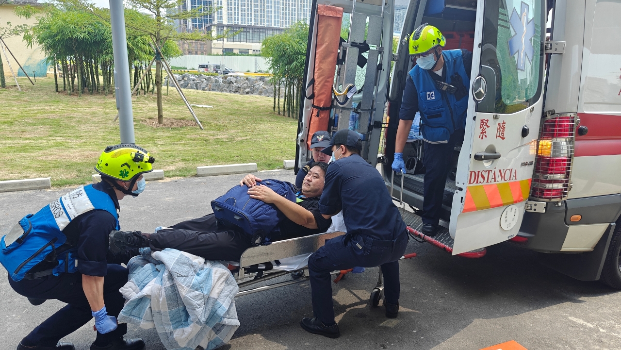 消防局接报后,立即派遣6架紧急救援车辆及25名队员赶赴现场,按照既定行动预案进行灭火及疏散搜救,并对疏散期间受伤的2名伤者进行初步护理后模拟送院治理。
