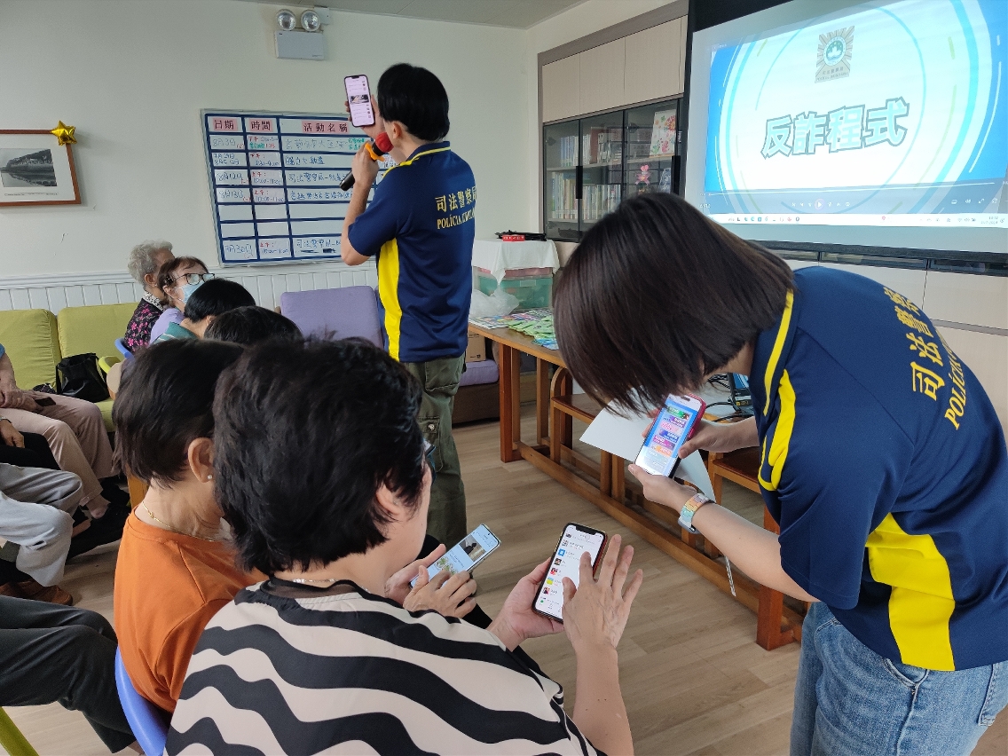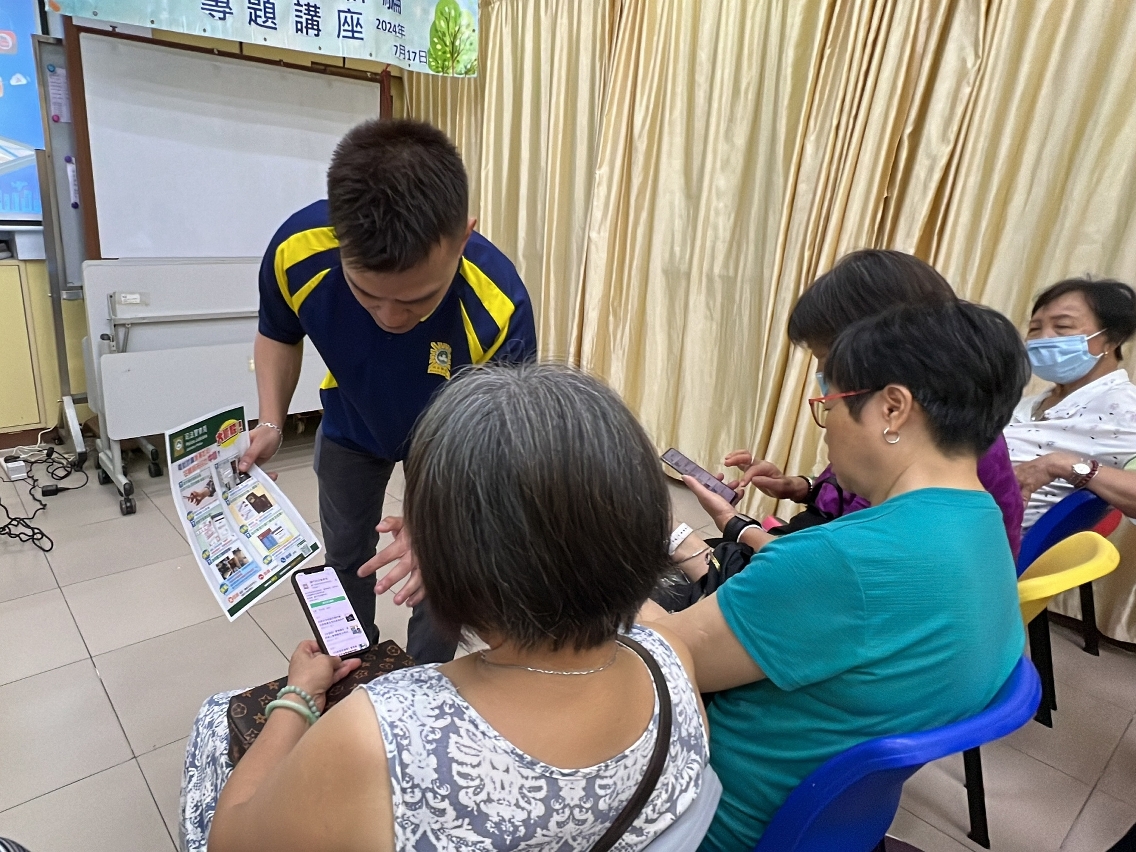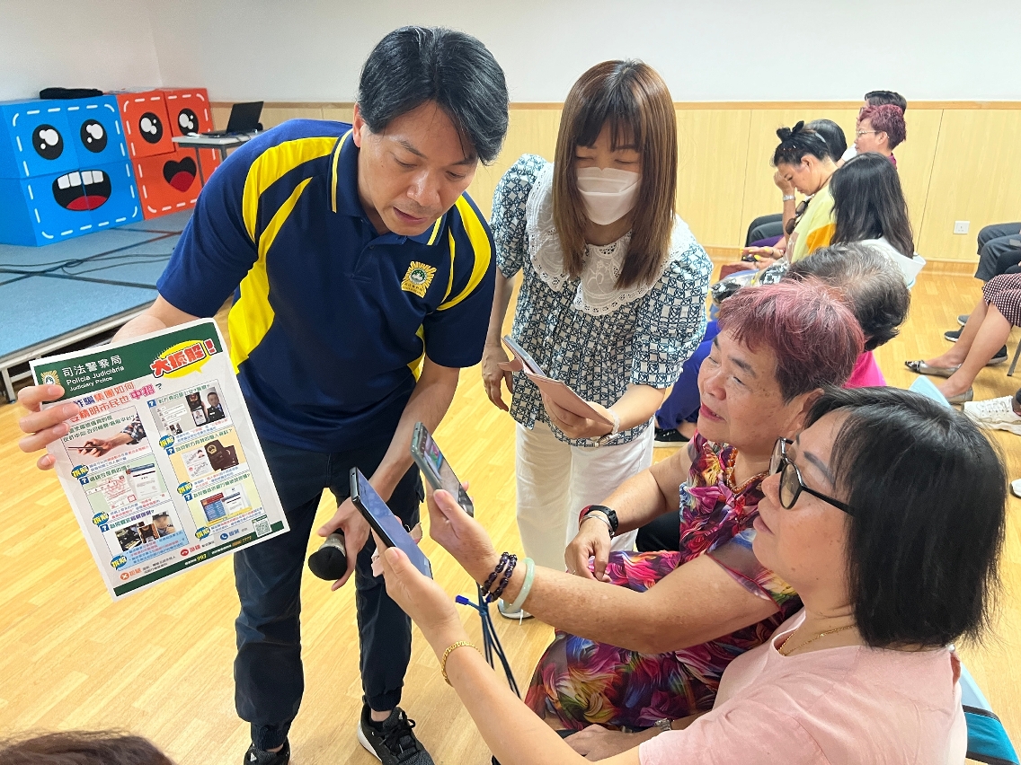 在“预防电讯网络诈骗”讲座中,司警局人员详细讲解近期电讯网络诈骗案发情况,并因应过往长者容易堕入的“假冒政府机关人员”、“猜猜我是谁”、“中奖短讯”等骗局,重点剖析有关诈骗手法、识别和防范方法,提醒他们警惕陌生来电,切勿轻信对方自称的身份,不要随意点撃可疑连结和提供个人资料、转账或汇款;呼吁他们若怀疑接到诈骗电话,谨记“拒绝”、“挂线”、“报案”防骗三原则,立即致电司警局防诈骗查询热线 88007777 或报案热线 993 求助。此外,司警局人员还即场教授他们使用司警局“反诈程式"查核诈骗风险指数,冀能增强他们的防骗意识和能力,减低上当受骗的风险;协助长者关注司警局微信官号,鼓励他们平日多留意局方的防罪资讯,以及向亲友转发分享,共同提高防罪警觉。