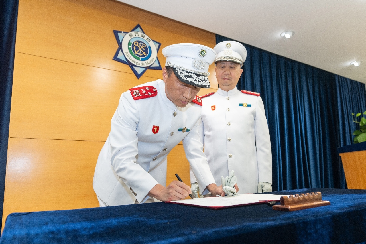 澳门海关今(28)日下午于海关总部大楼举行助理关长就职仪式,在海关领导和各部门主管的见证下,叶华钊关务总长进行宣誓及签署就职状,就任海关助理关长。