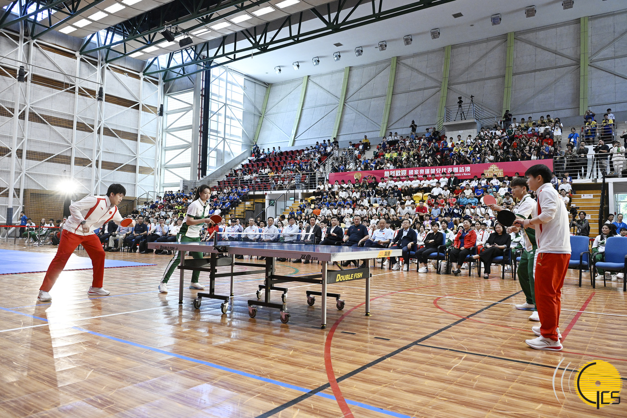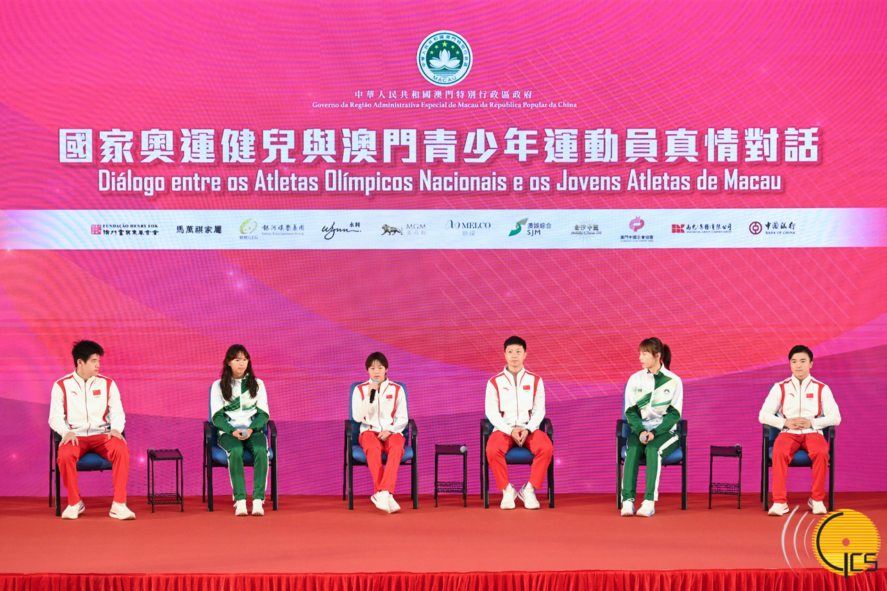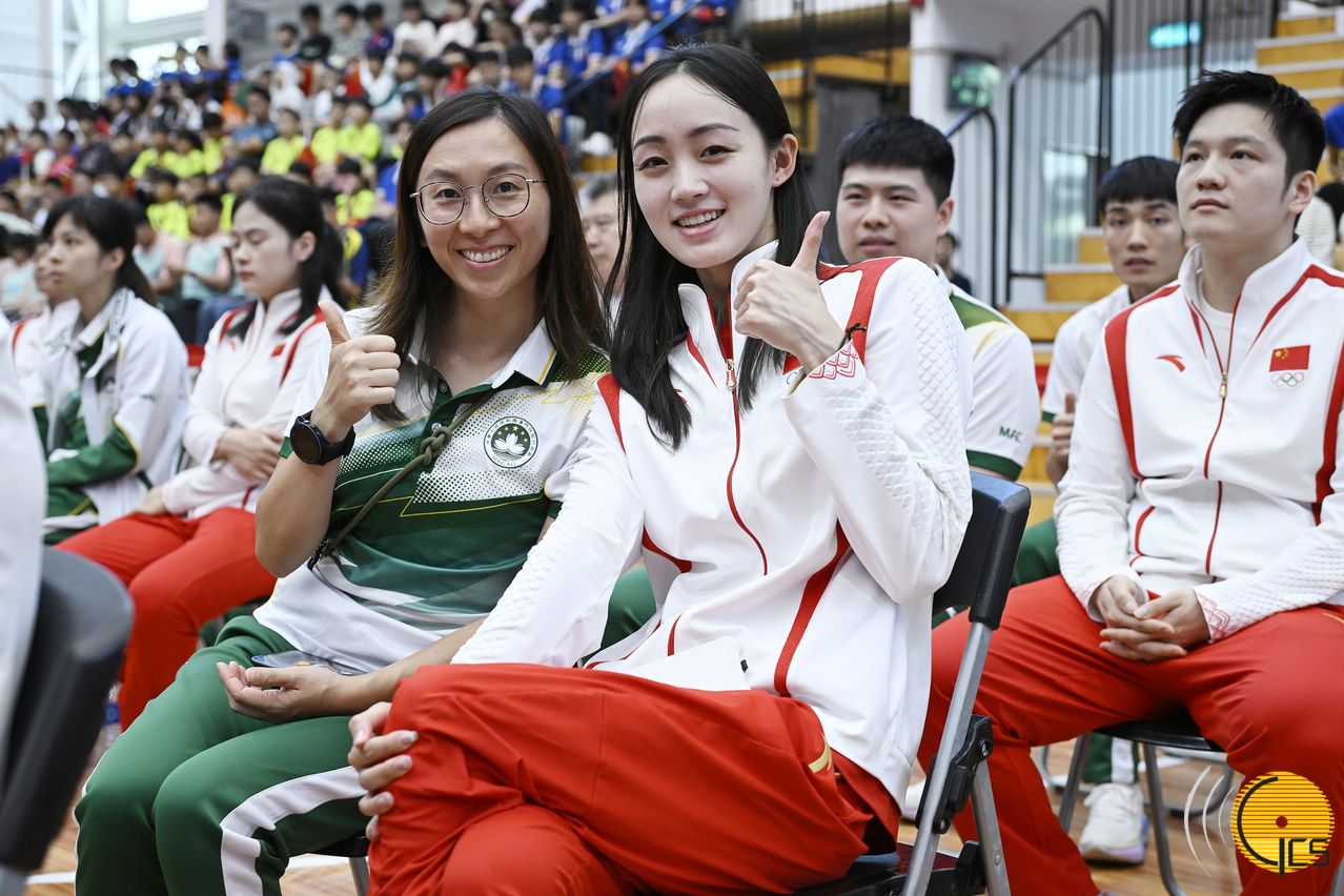 代表团一行上午10时30分出席在奥林匹克体育中心室内体育馆举行的“国家奥运健儿与澳门青少年运动员真情对话”活动,向在场600名本澳精英和集训队运动员、青年学生分享自身经历,以及训练过程的点点滴滴,并与澳门运动员进行了乒乓球和艺术体操互动交流,国家奥运健儿勉励本澳运动员及青年要有拼搏、坚毅不屈的精神。其中,8名运动员包括马龙、全红婵、曹缘、潘展乐、冯雨、郭崎琪、刘洋及李倩,与本澳运动员代表王泳欣、陈佩琳、方文浩、梁盈岚,及现场学生和运动员真情对话,分享在奥运会夺奖、为国争光的喜悦。