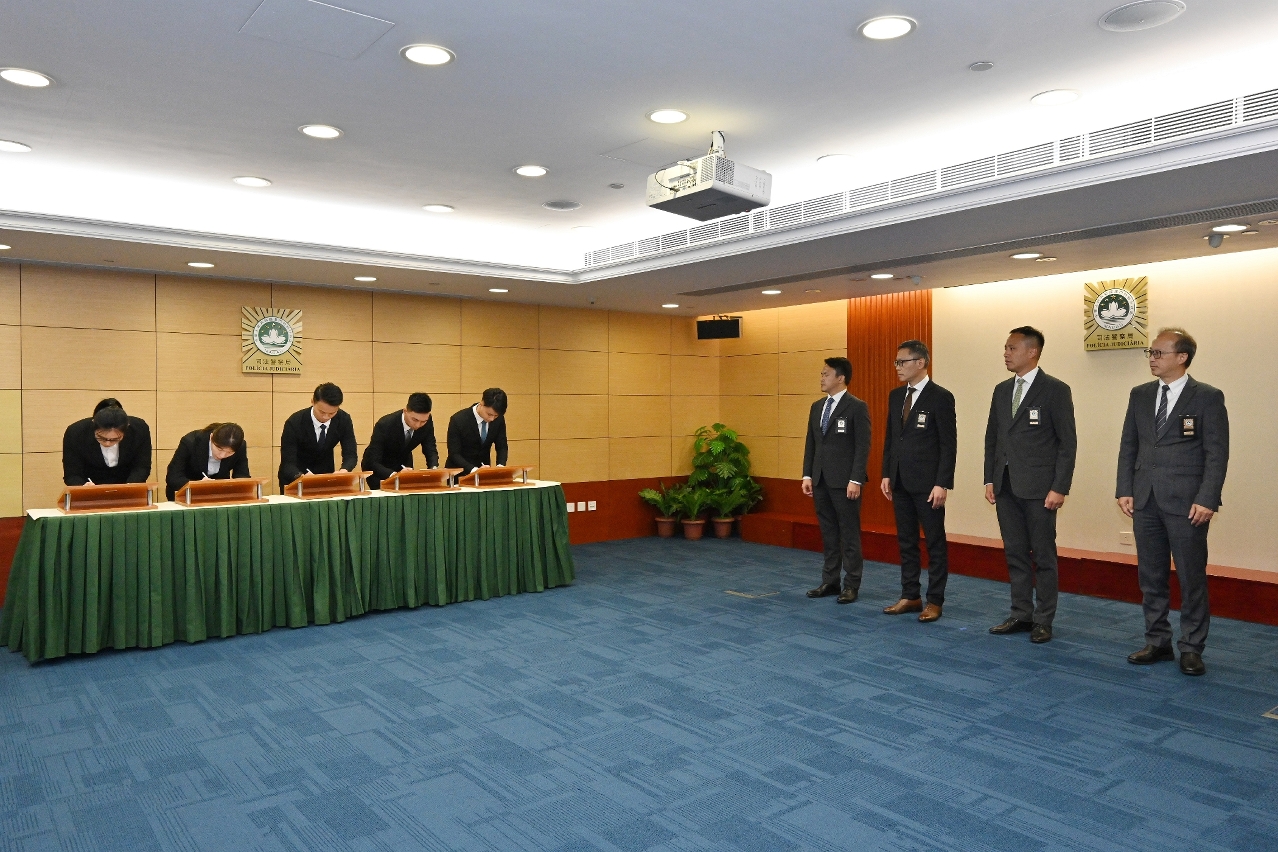司法警察局于2024年9月5日举行首席刑事侦查员就职仪式。在薛仲明局长主礼及监誓,赖文威、苏兆强、岑锦荣三位副局长和各部门主管的见证下,共78名人员宣誓就任首席刑事侦查员。