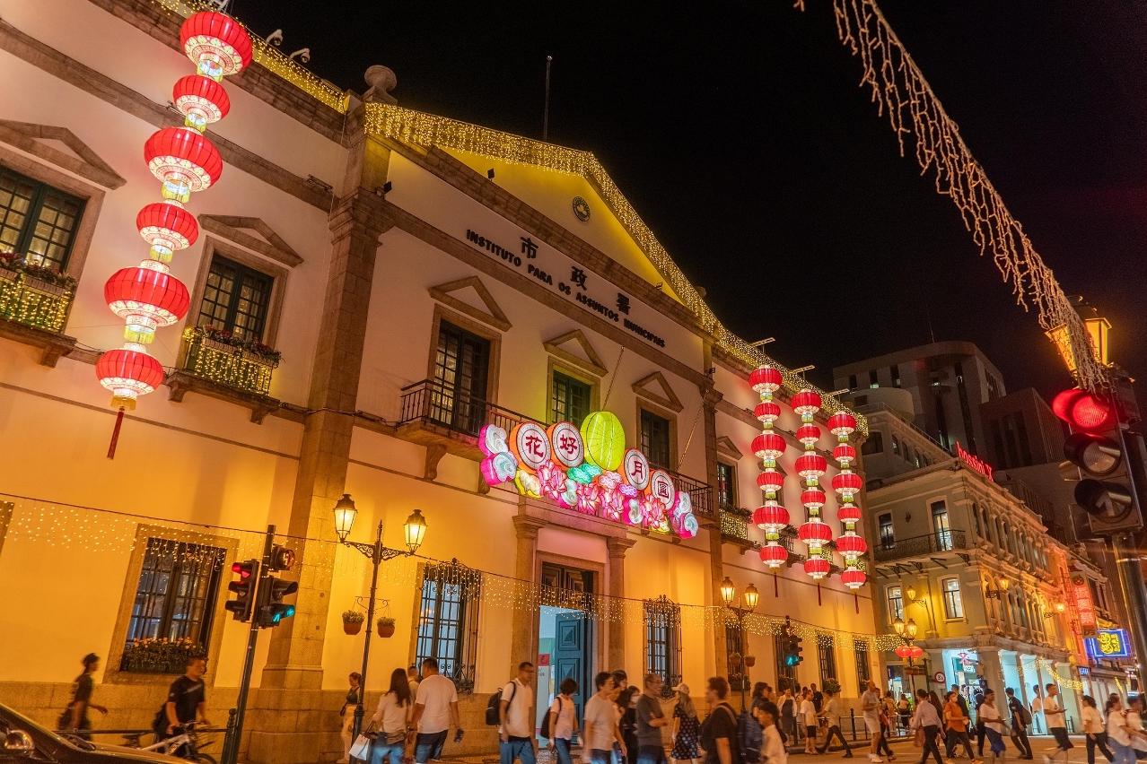 为增添国庆和中秋的节日欢乐气氛,市政署以“家好月圆迎中秋 民安物阜贺国庆”为主题,在全澳各区布置节日灯饰。早前受台风“摩羯”影响,为保障公众安全,部分灯饰须临时卸下,近日已加紧恢复安装灯饰,并已于各区陆续放亮。